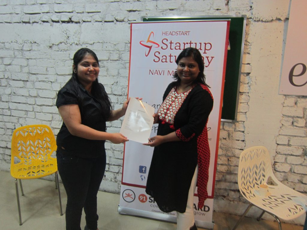 viii: Aishwarya from Headstart (yours truly) felicitating Anika Mehta and Sonali Mehta