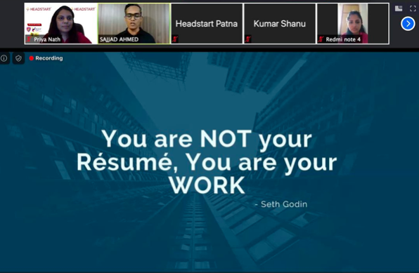 On 30th May 2020, Headstart Network Foundation – Patna chapter organised a webinar on the topic – “What companies expect while hiring.” The speaker of the webinar was Mr Sajjad Ahmed, Director – HR, Talent Management, Capgemini.