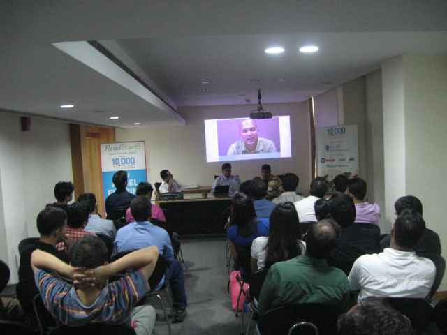 The event started with the simple registration process. ‘Write your name, email, phone number on a sheet and get a Headstart Name-sticker in return’. Two of our volunteers worked responsibly to make the registration process smooth and less cumbersome. Once registered, there was a brief networking session. At 4:30pm, it was time to launch the Event. Mr Abhinaba Dey, our volunteer and mentor, opened the event with a brief about Headstart Network Foundation and Startup Saturday Kolkata. After introducing ourselves, it was time to know the people attending the event. Everyone present where given a minute to Introduce themselves, brief about their venture and a little about their expectations from Startup Saturday. We found a lot of new-faces, some company representatives and students in the mix. Nasscom 10,000Startup video was the next on our agenda and it received a lot of curiosity.