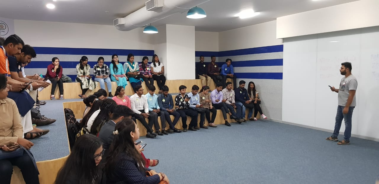 On the day of the event, the entire format was thoroughly explained to all the participants. Also, each start-up was given an opportunity to pitch in front of the candidates. Further, 11 start-ups were placed in different sections based on their requirements of tech or non-tech candidates. A batch of 11 candidates was taken at a time and each was given 5 minutes with one start-up, post which a whistle was blown and the next batch of 11 candidates were called in. Altogether, a candidate gave interviews to 11 companies in 55 minutes.